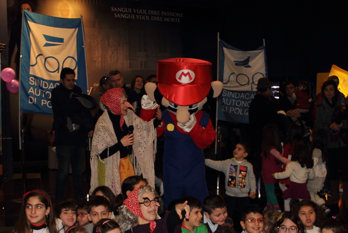 Le Befane e Super Mario hanno accolto e fatto giocare i figli delle poliziotte e dei poliziotti catanesi prima della proiezione del film "Frozen- Il regno del ghiaccio".